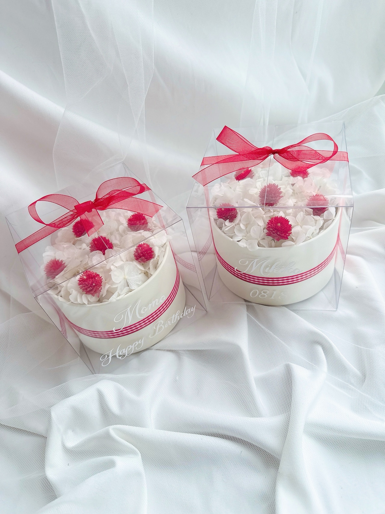 お名前と日付けを入れられるクリアボックス付きで、世界にひとつだけの特別なギフトに仕上がります。