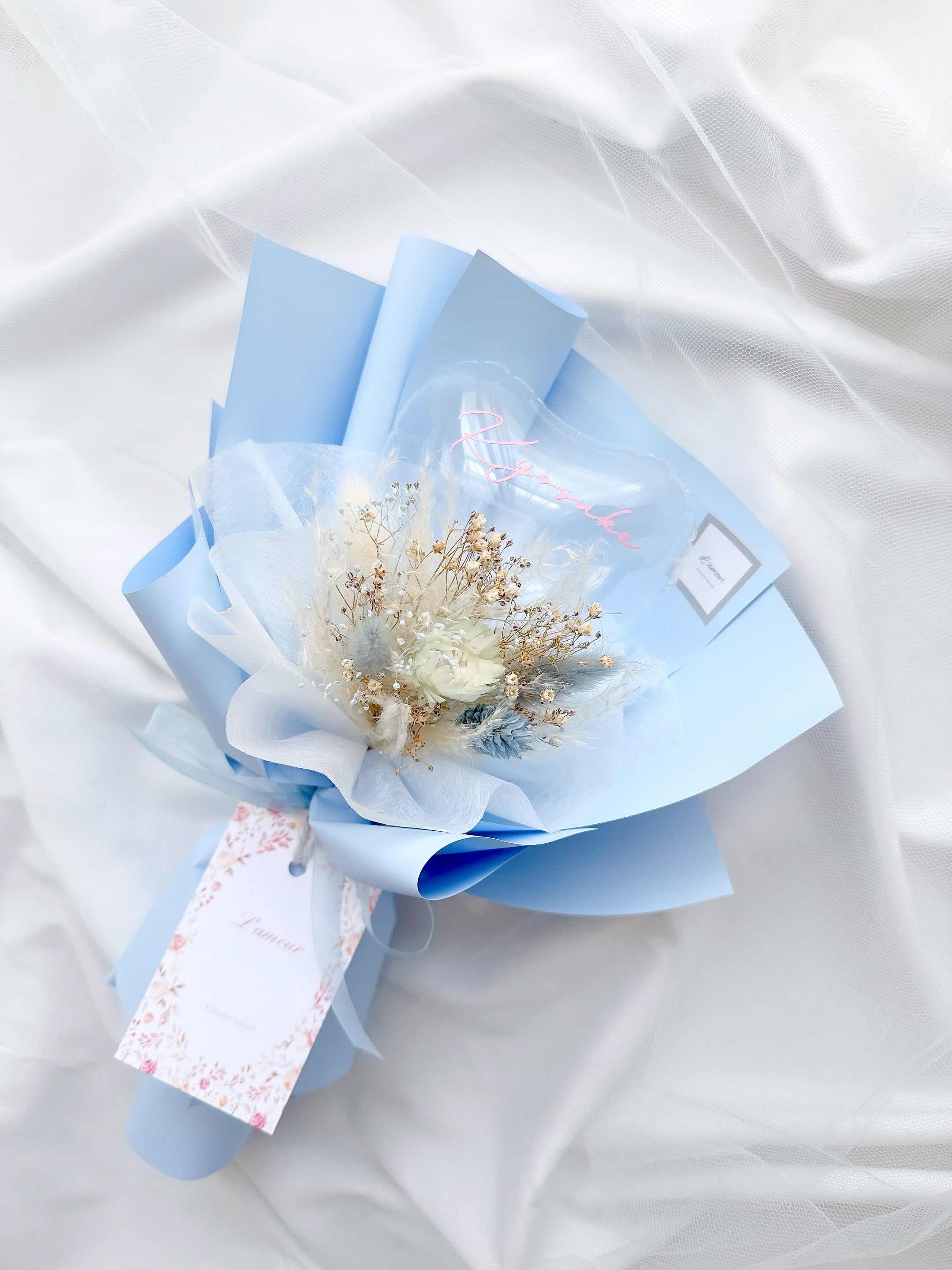 クリアバルーンとドライフラワーのカラフルブーケ Ssize (ハートタイプ)